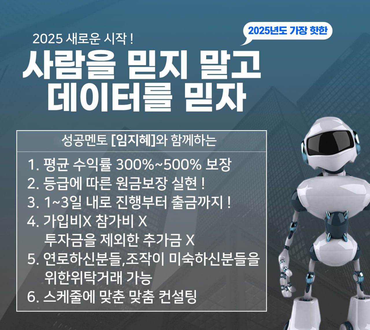 지푸라기라도 잡는 심정으로 투자하지 마시고, 새로운 시작을 위한 발돋움이라 생각하고 투자해 주신다면 최선을 다해 수익률로 증명해 드리겠습니다.